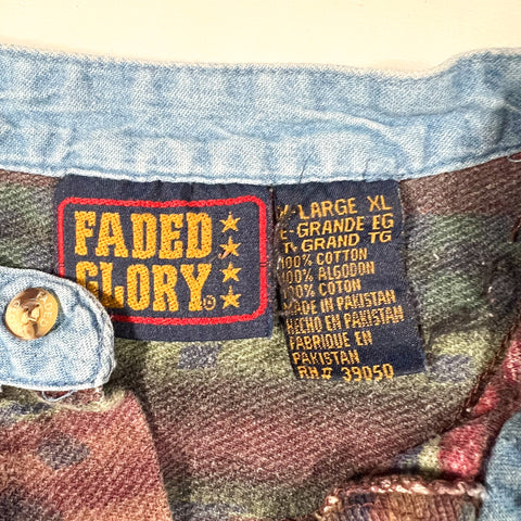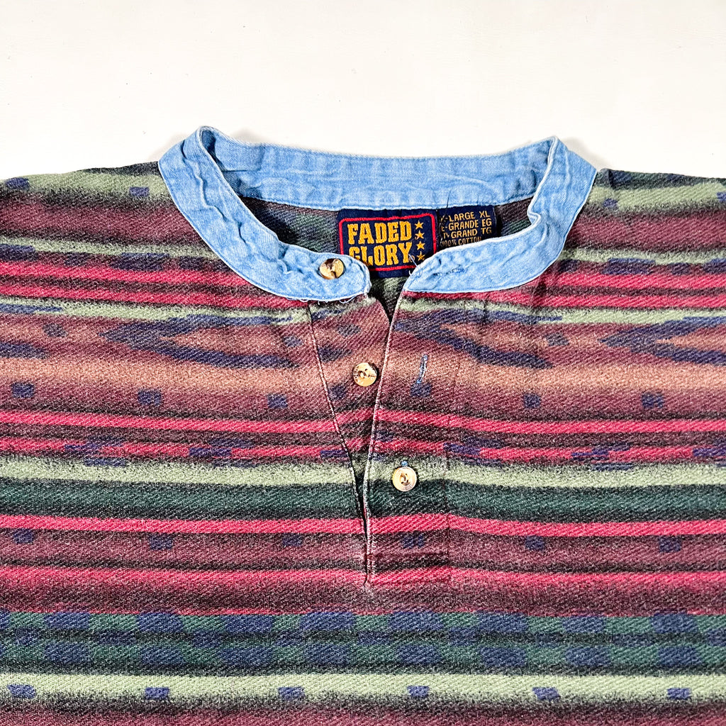 faded glory shirt, vintage faded glory, 90s pullover, 90s southwest shirt, vintage stripe shirt, vintage woven shirt, chambray collar shirt, oversized 90s shirt, 2xl vintage shirt, 3xl vintage shirt, southwest pattern shirt, retro stripe top