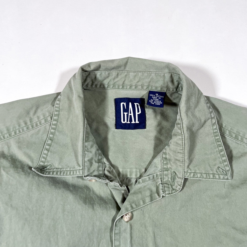 vintage GAP shirt, 90s utility button up, sage green shirt, 90s workwear, cotton button down, GAP long sleeve, minimalist vintage shirt, muted green shirt, casual overshirt