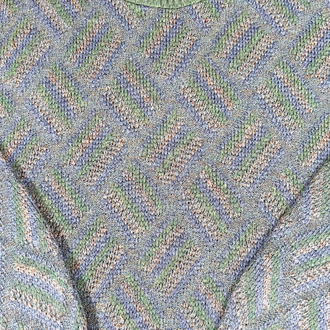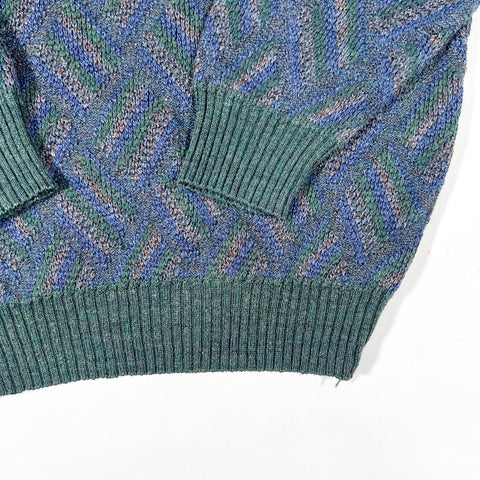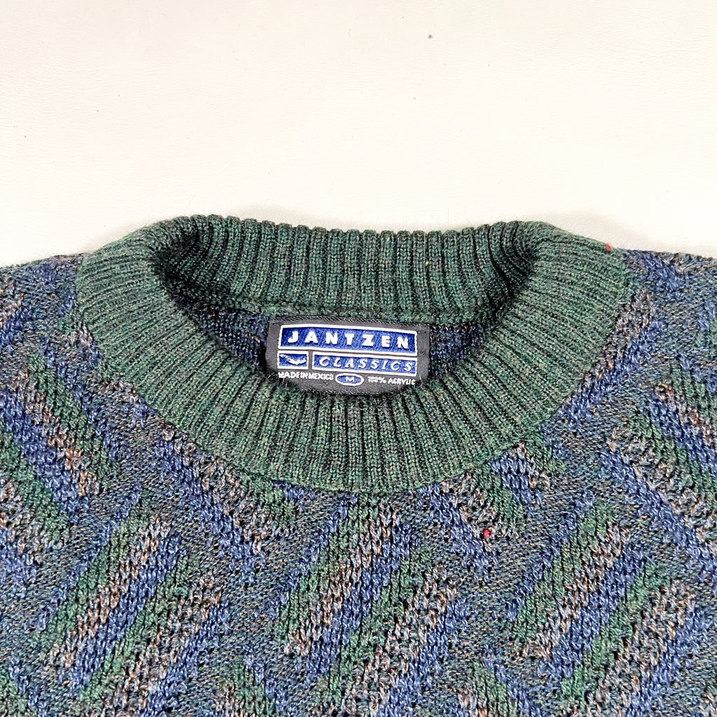 vintage sweater, jantzen knit, 90s knitwear, geometric pattern sweater, green blue sweater, retro pullover, textured acrylic sweater, mens vintage sweater, fall winter knit