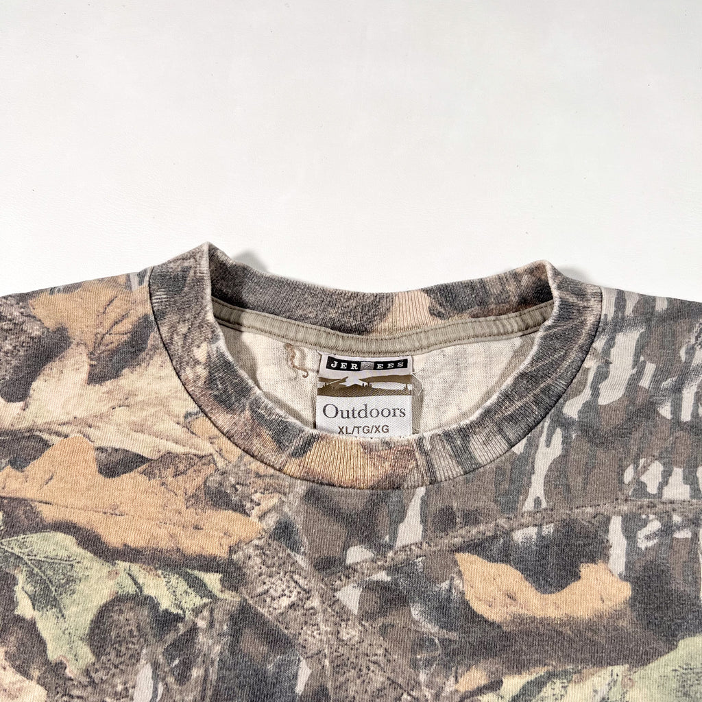 vintage camo shirt, Realtree camo tee, 90s hunting t-shirt, Jerzees Outdoors tee, all-over print camo shirt, vintage XL camo tee, XXL camo t-shirt, outdoorswear vintage, retro camo shirt, worn-in hunting tee