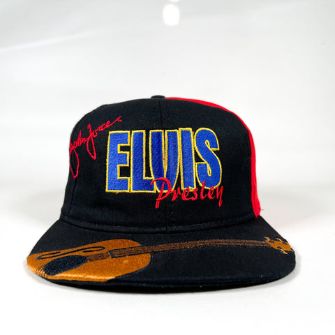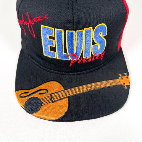 Standout 90’s racing memorabilia piece merging two legends — Elvis Presley and NHRA icon John Force. This vintage Chase Authentics snapback features bold multicolor embroidery of “Elvis Presley” across the front, John Force’s signature stitched above, and a golden embroidered guitar across the brim.