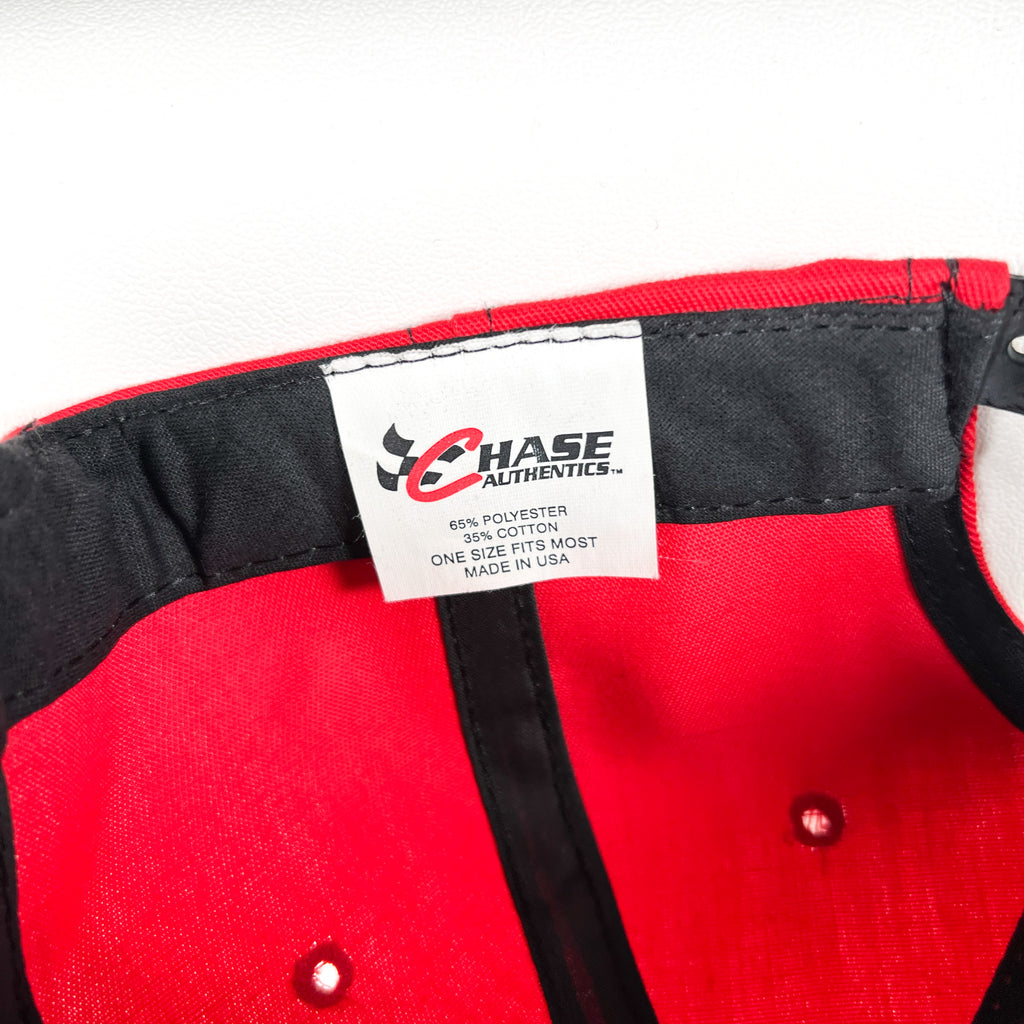 Black and red two-tone panel construction with embroidered Castrol GTX logos on both sides and back, giving it that classic race team look. Made in the USA by Chase Authentics, this hat captures peak 90’s motorsport and pop-culture crossover energy.