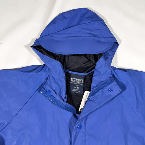 Lands’ End rain jacket, PVC raincoat, vintage 90s outerwear, waterproof shell, blue hooded jacket, retro rainwear, 90s windbreaker, CobbleStore Vintage