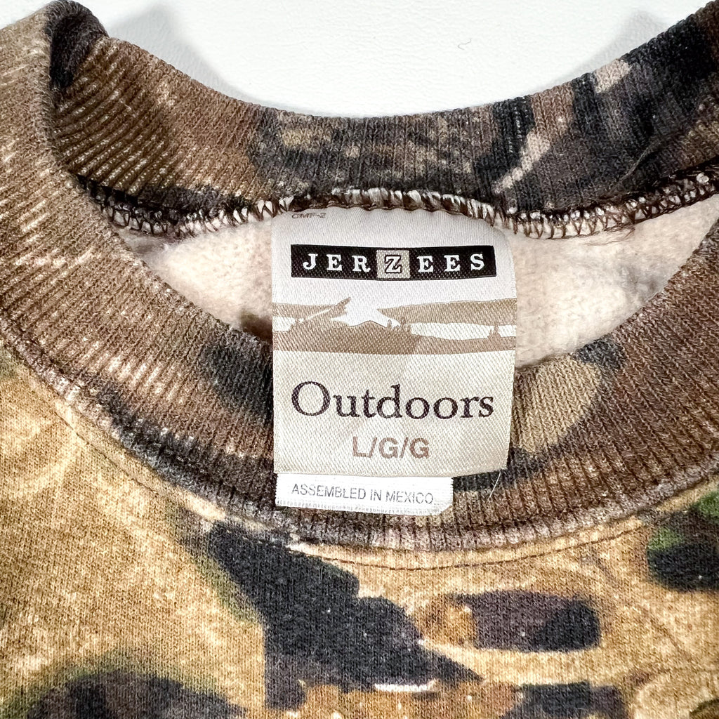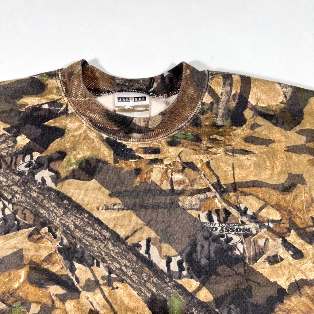 vintage mossy oak sweatshirt, 90s camo crewneck, jerzees outdoors camo, hunting camouflage sweatshirt, forest camo pullover, vintage outdoor wear, mossy oak camo 90s