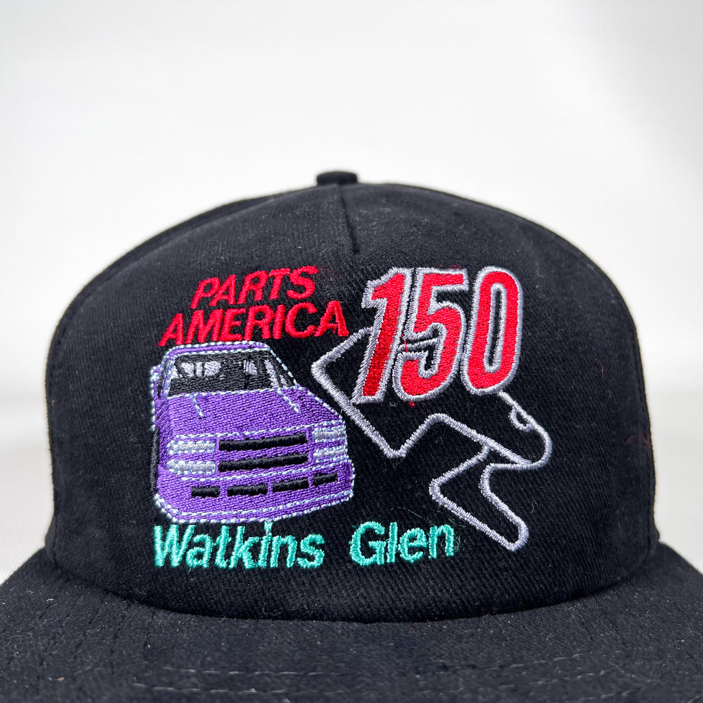 vintage racing hat, watkins glen hat, parts america 150, nascar hat, 90s motorsports hat, made in usa hat, vintage snapback, racing memorabilia, stock car racing hat