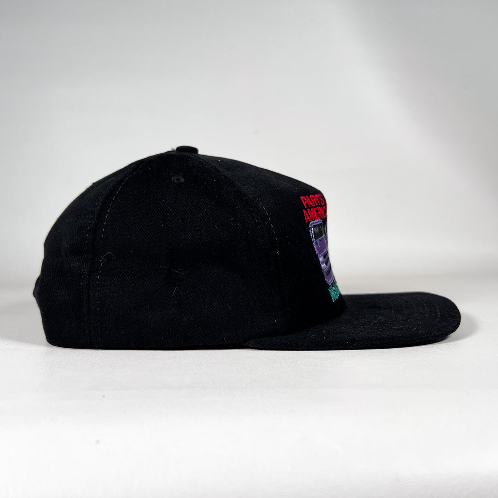Vintage 1990’s Parts America Watkins Glen 150 racing hat featuring a clean embroidered front graphic with a stock truck illustration, track outline, and bold “150” detailing. A classic piece of American motorsports memorabilia tied to Watkins Glen International, one of the most iconic road racing circuits in the U.S.