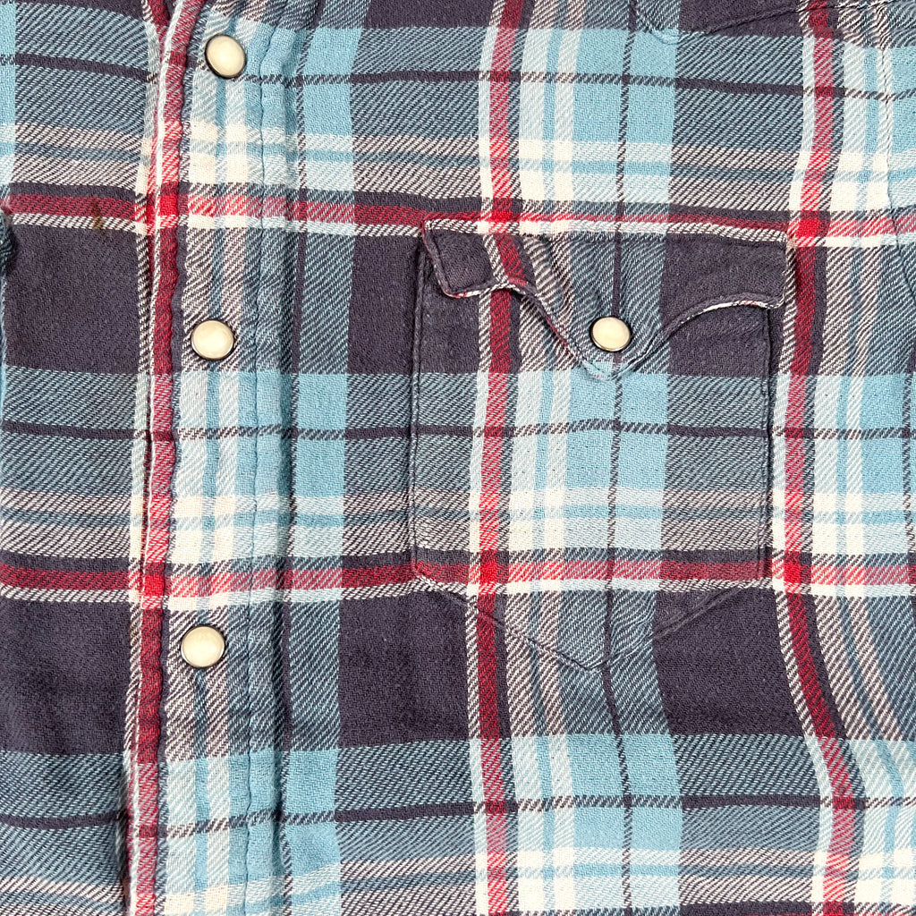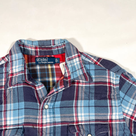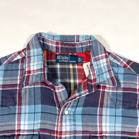 Search terms: vintage flannel shirt plaid ralph lauren double faced western pearl snap 90s mens shirt workwear soft flannel grunge shirt blue red plaid flannel shirt
