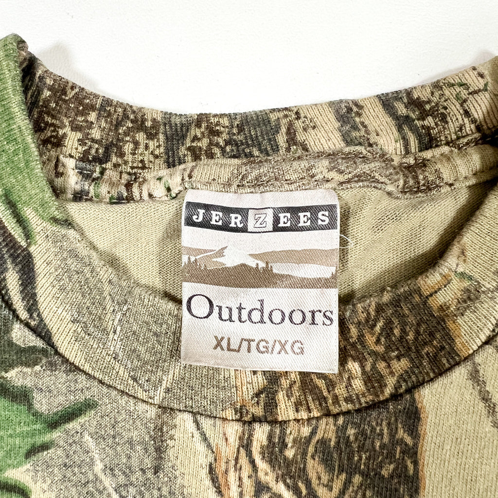 vintage camo shirt, realtree t shirt, 90s camo tee, hunting camo shirt, jerzees outdoors, all over print camo, woodland camo vintage, oversized camo shirt, 90s outdoor wear, vintage hunting apparel