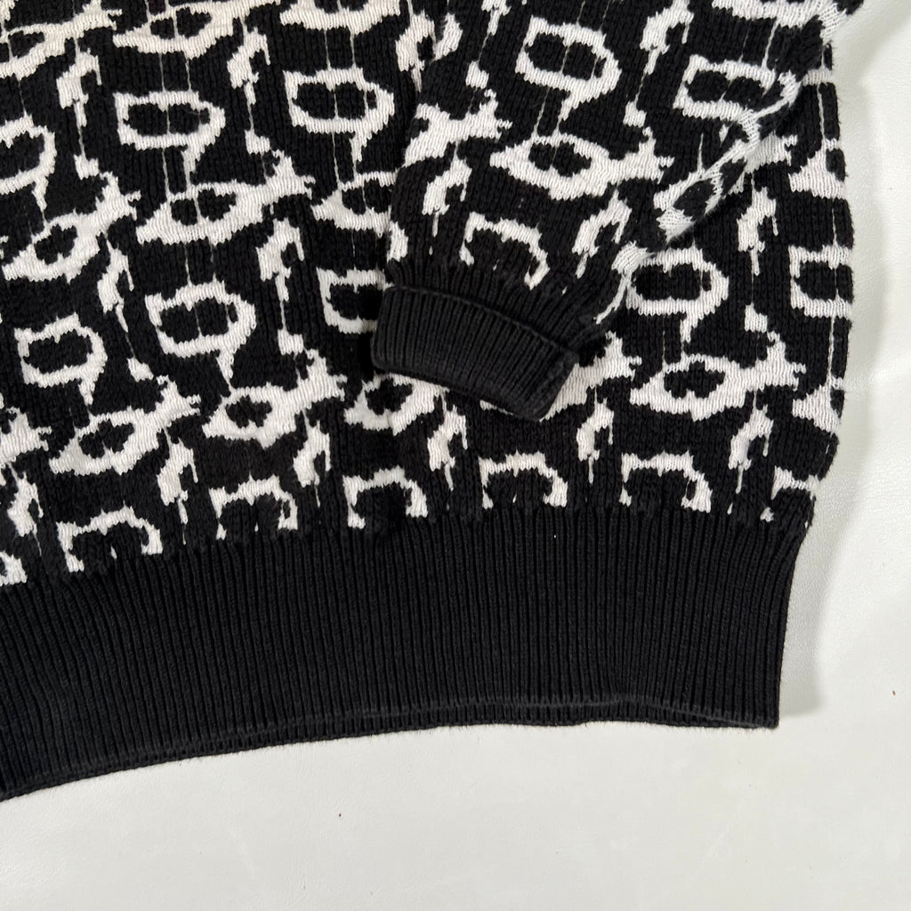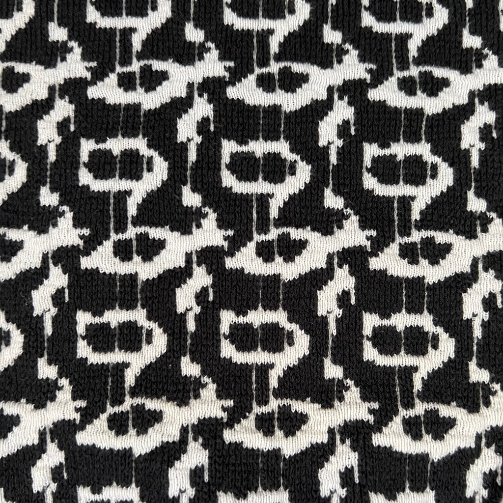 Distinctive 90’s Ron Chereskin sweater made in the USA, featuring a bold black-and-white geometric pattern throughout. Constructed from 100% cotton with a soft, midweight knit and ribbed collar, cuffs, and hem. The repeating abstract design gives this piece a timeless, designer look with a classic 90s edge.