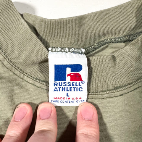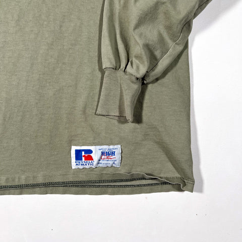 Search terms: vintage russell athletic, usa made russell long sleeve, 90s russell tee, sage green long sleeve, heavyweight long sleeve shirt, vintage basics, 90s athletic wear, made in usa shirt