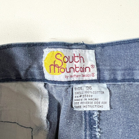 Clean vintage 90’s South Mountain shorts in a soft washed blue cotton. Classic high-rise fit with front pleats, giving them that relaxed, slightly tailored vintage silhouette that’s been trending hard. Lightweight but sturdy cotton—perfect everyday summer pair.