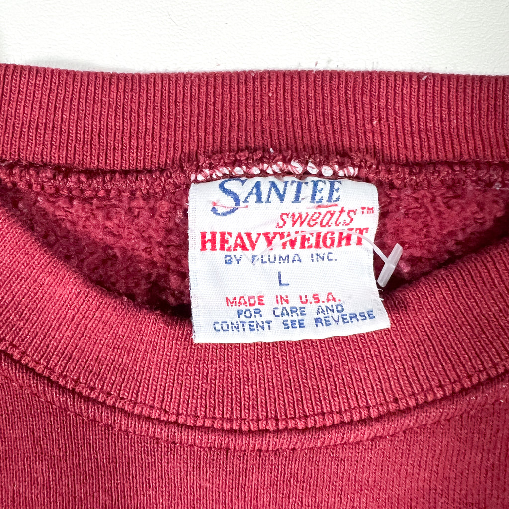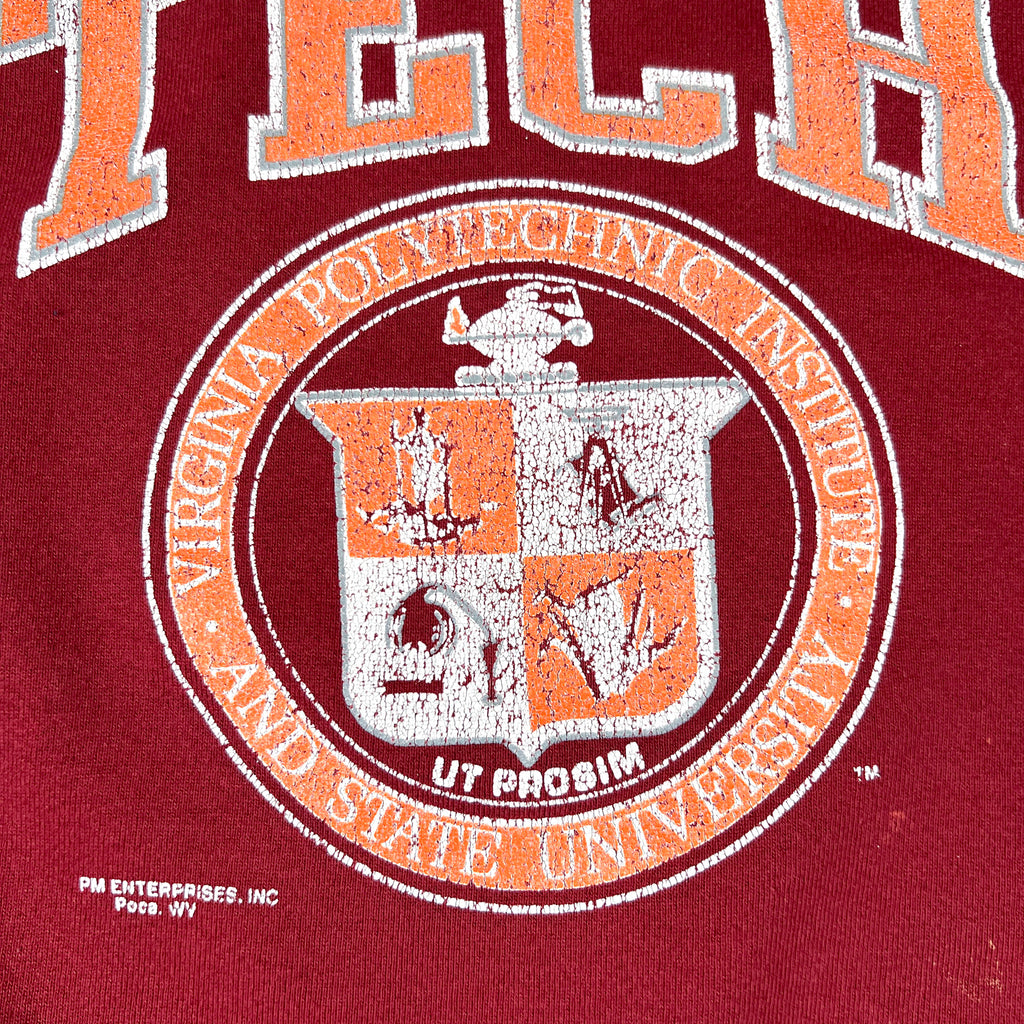 vintage virginia tech sweatshirt, 90s college crewneck, hokies sweatshirt, vt seal logo, santee sweats usa, made in usa collegiate wear, vintage maroon sweater, hokies athletics, 90s sportswear vintage