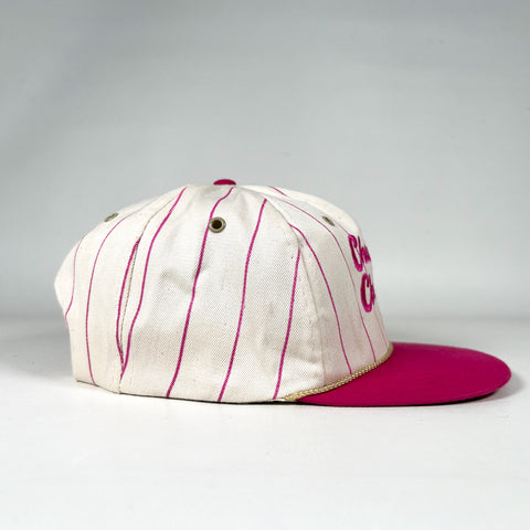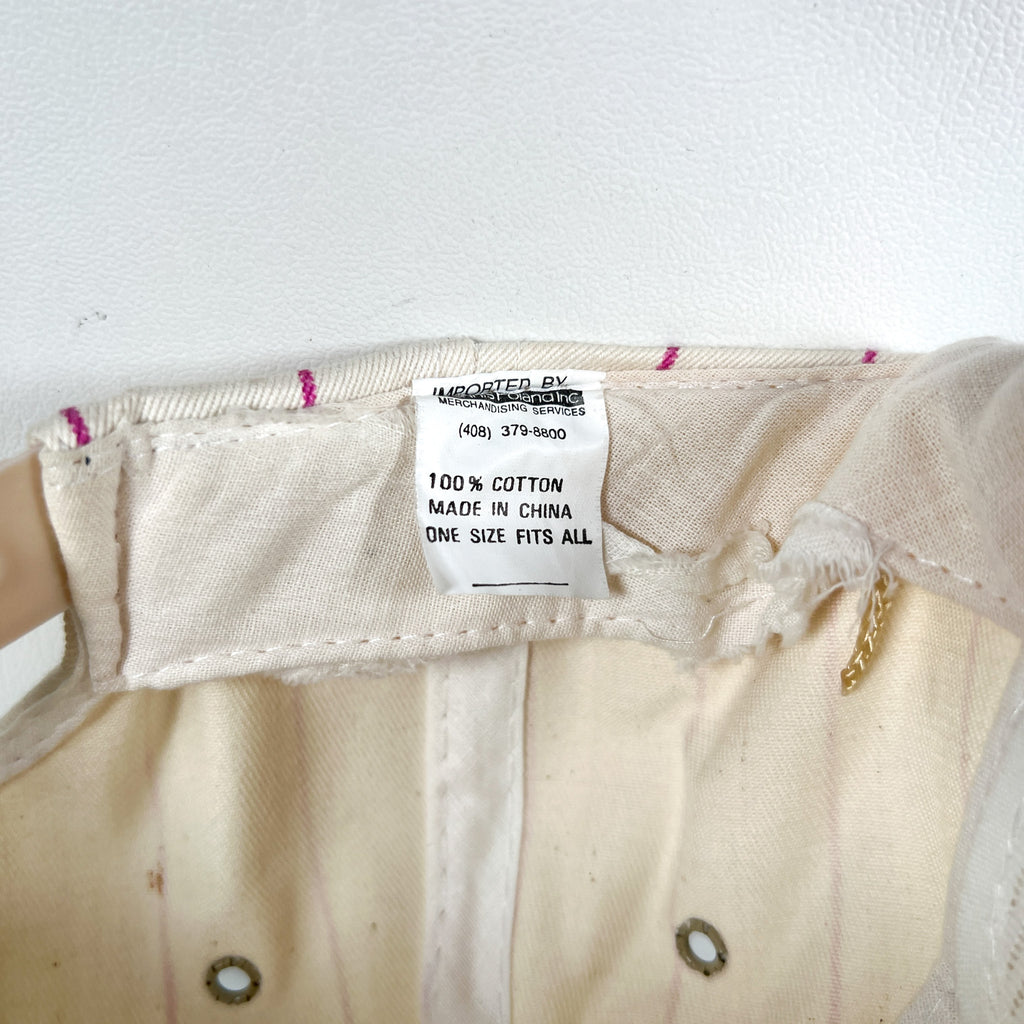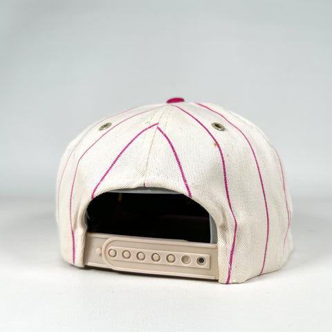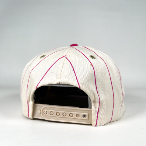 Color: White with pink pinstripes, magenta brim, and embroidered logo