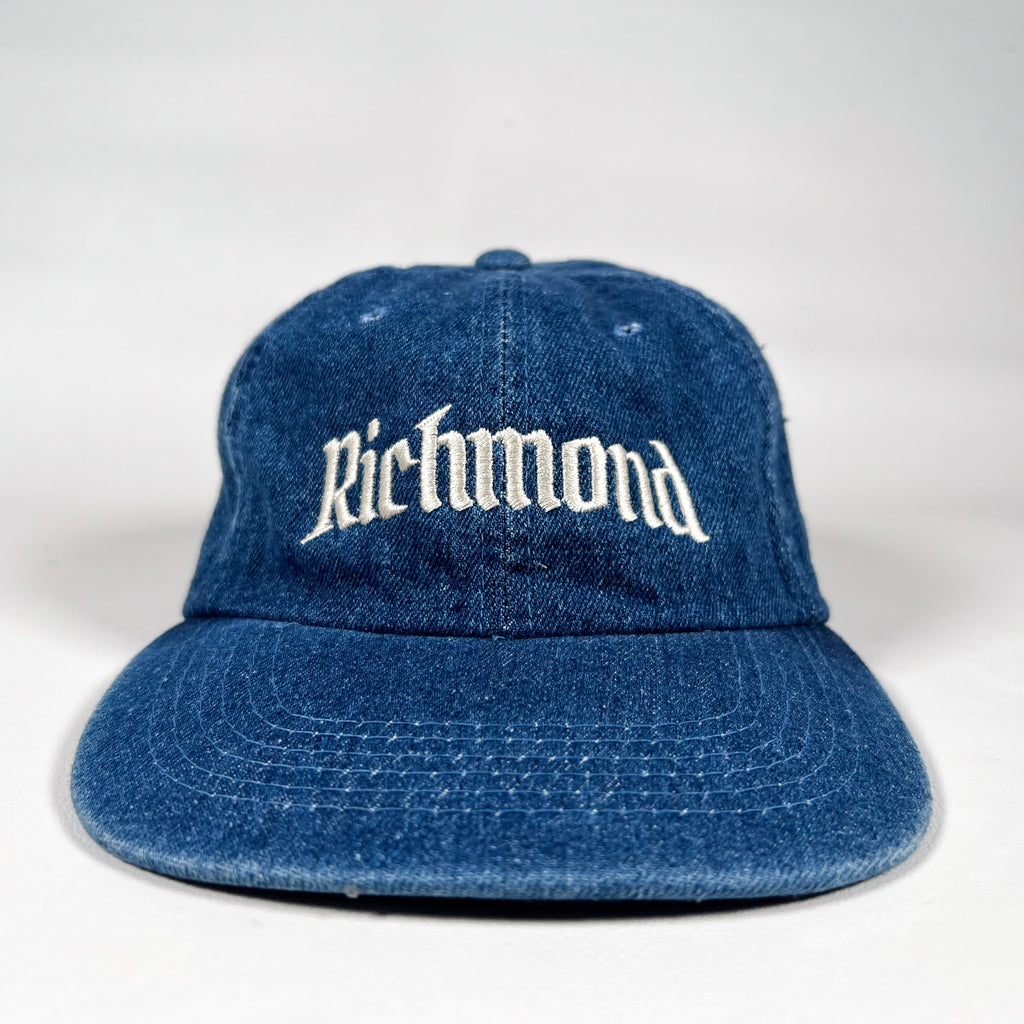 richmond hat vintage denim cap old english embroidery rva streetwear washed denim baseball hat cobblestore merch adjustable strap retro style virginia apparel