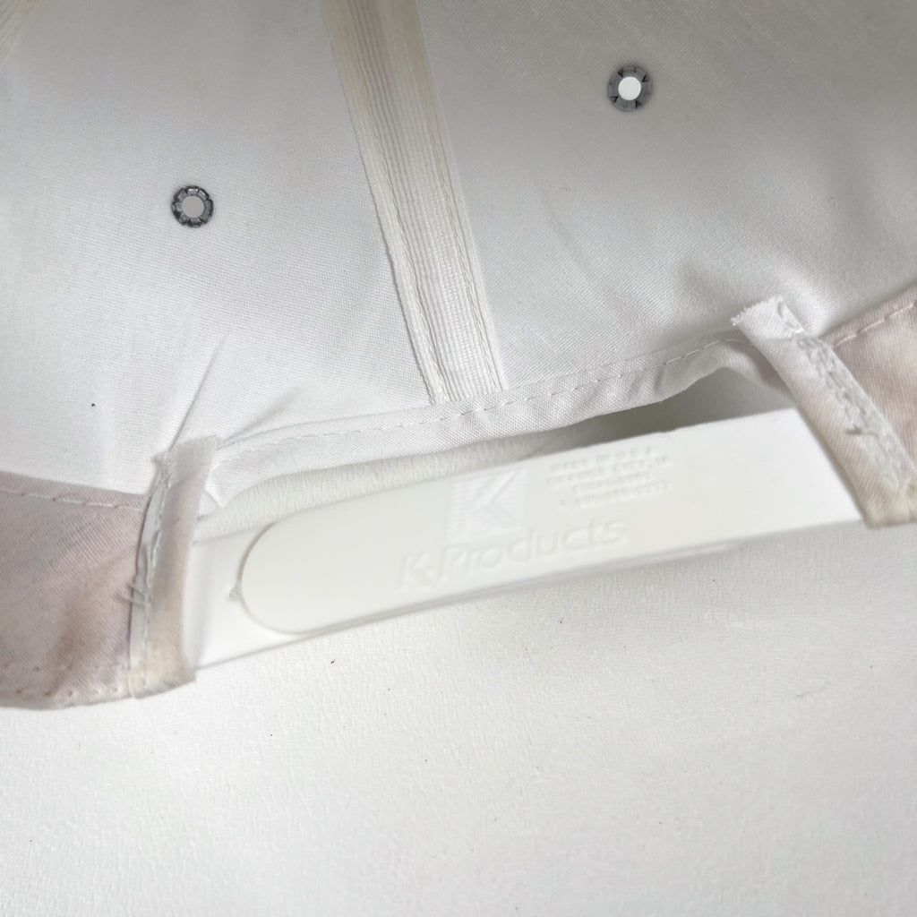 This hat shows noticeable discoloration and staining, primarily along the interior sweatband and near the back opening, consistent with age and prior wear. No major structural damage, but cosmetic flaws are present. Priced accordingly. Please review all photos carefully and reach out with any questions prior to purchase.