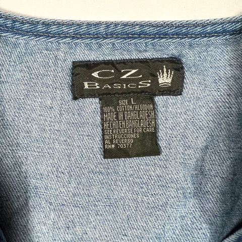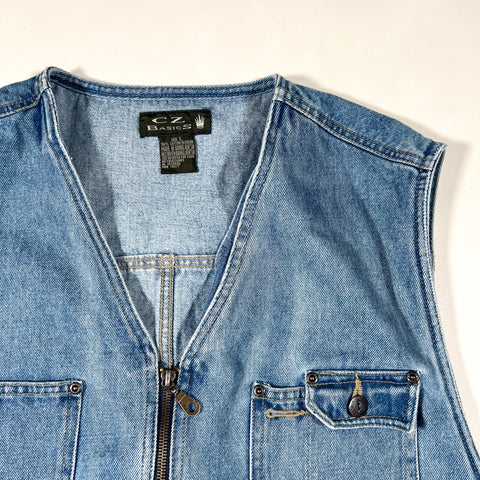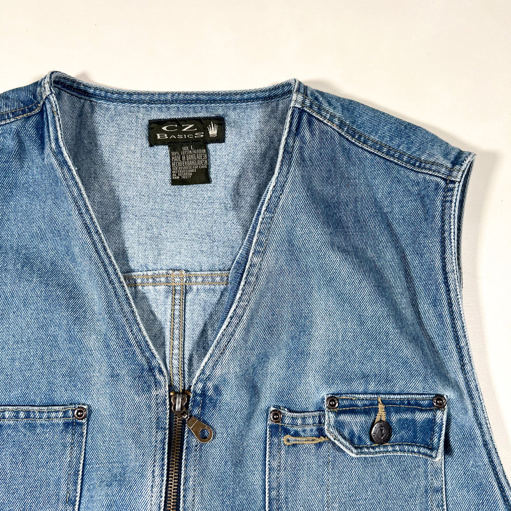 denim vest, utility vest, 90s denim, vintage workwear vest, light wash jean vest, retro layering piece, cz basics vest, vintage streetwear, 90s fashion, jean utility vest