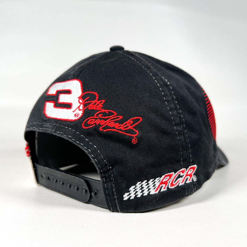 The back features the iconic #3 and Dale Earnhardt signature embroidery, along with additional RCR (Richard Childress Racing) branding and a NASCAR logo on the rear panel. Manufactured by Chase Authentics, known for producing officially licensed NASCAR merchandise.