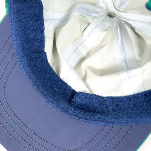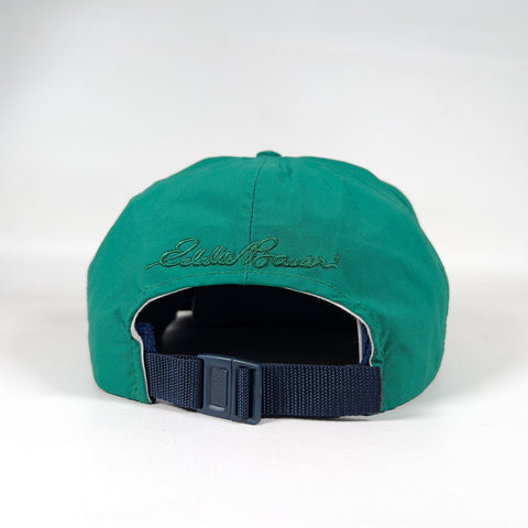 Authentic vintage Eddie Bauer outdoor cap made with Gore-Tex waterproof technology. This cap comes in a kelly green with a navy underbrim and features classic Eddie Bauer embroidery on the back. Designed for performance in the outdoors, it’s a lightweight, weather-resistant piece of heritage gear from Eddie Bauer’s USA-made era.