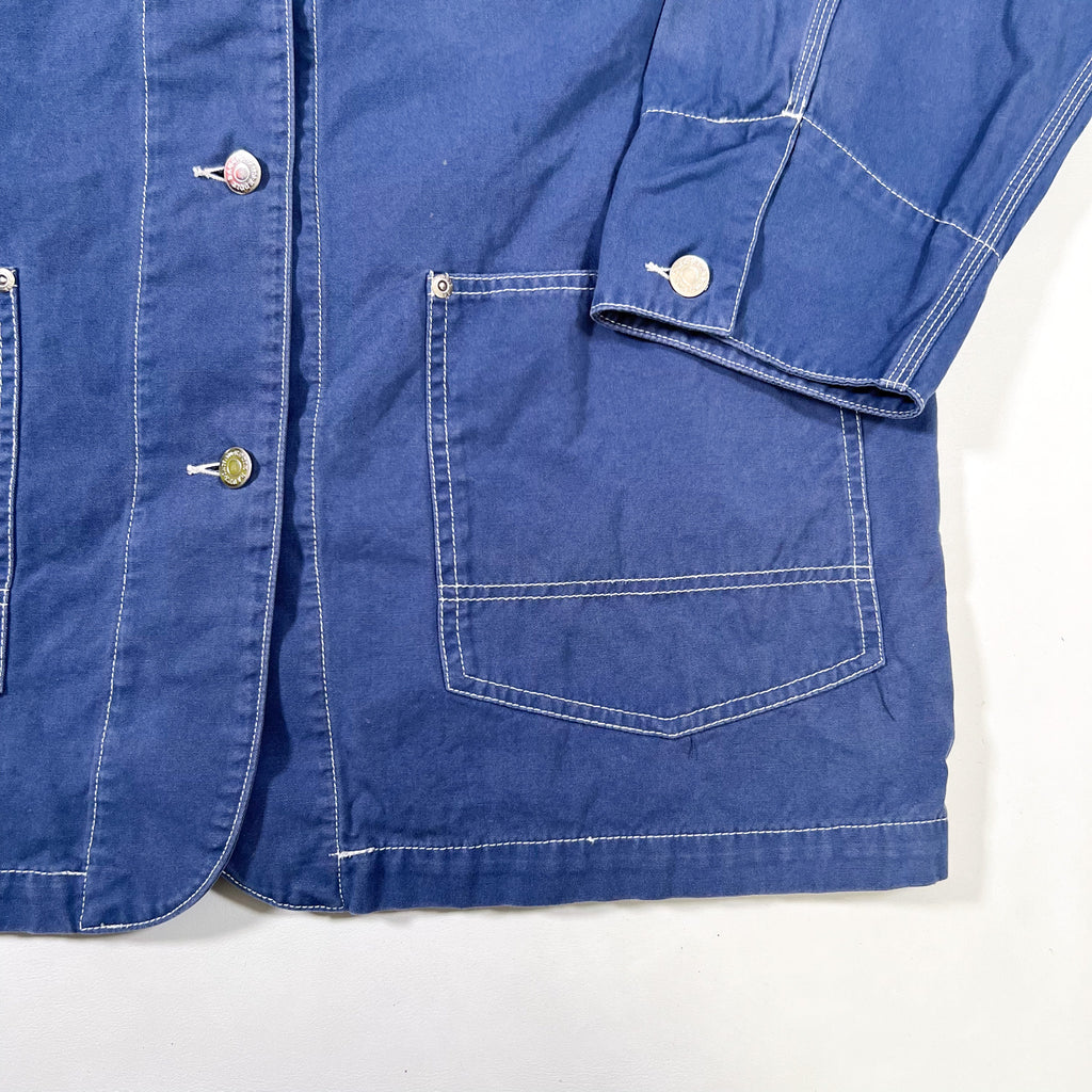 vintage eddie bauer jacket, 90s chore coat, indigo work jacket, made in usa eddie bauer, vintage workwear, contrast stitch jacket, utility jacket, m l jacket, retro outerwear