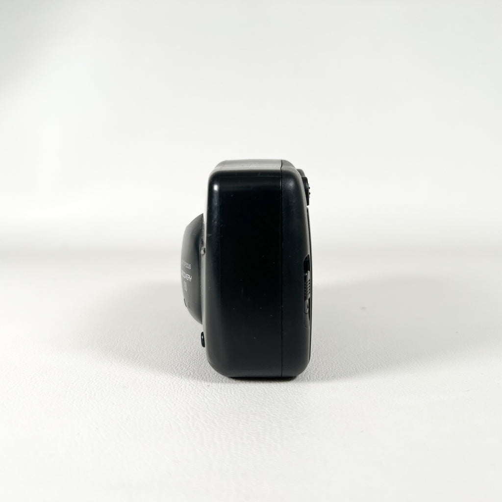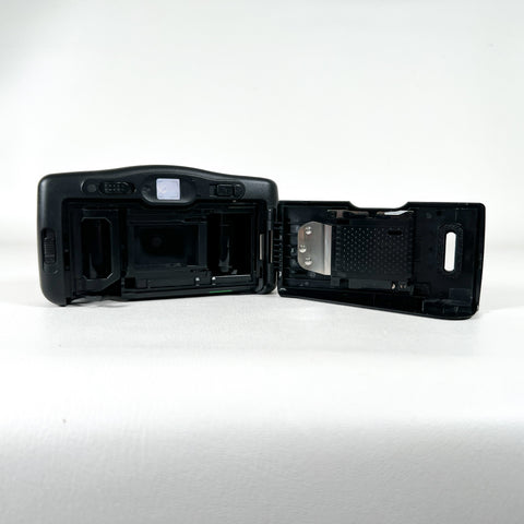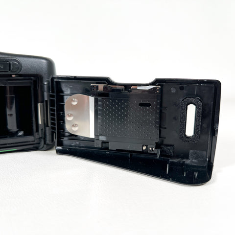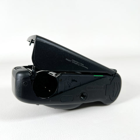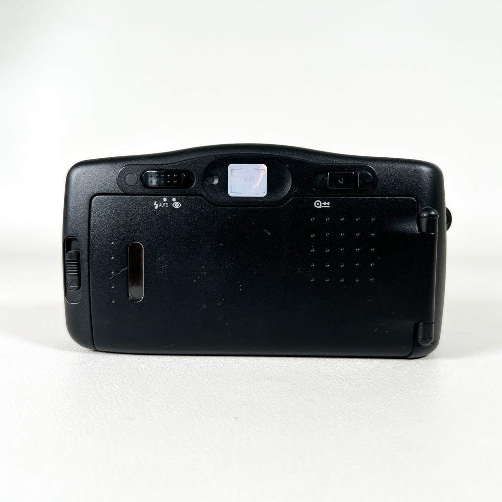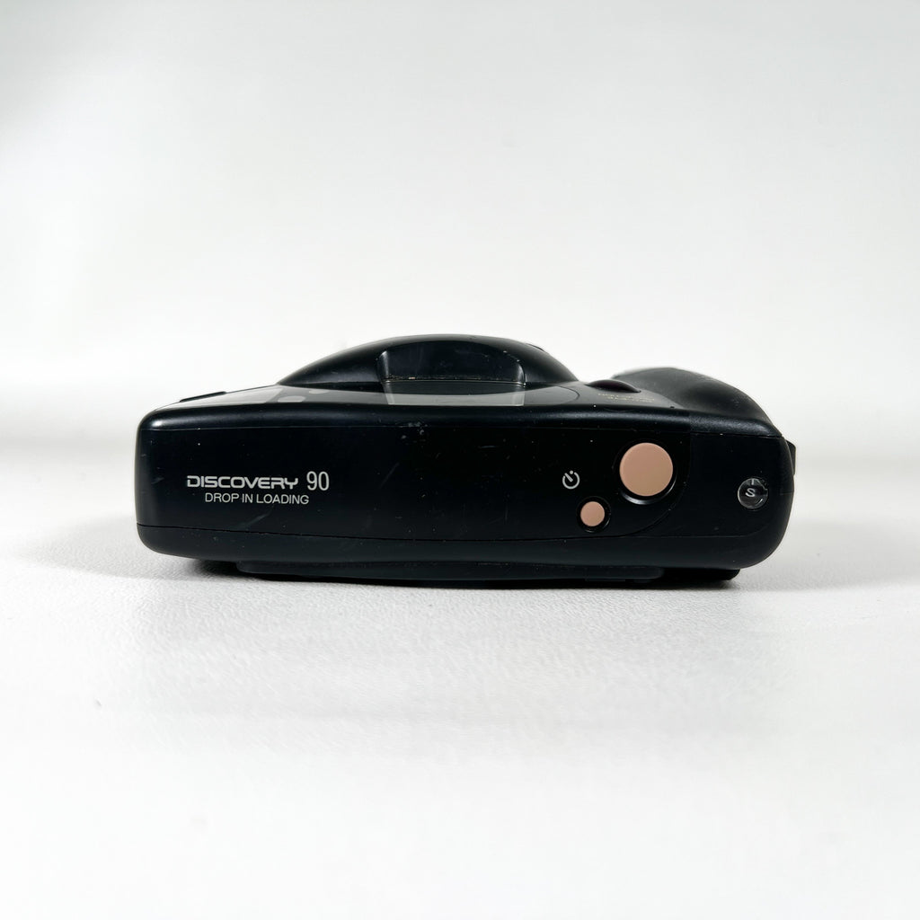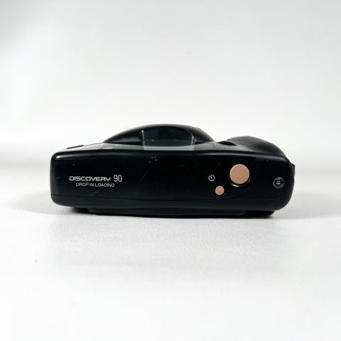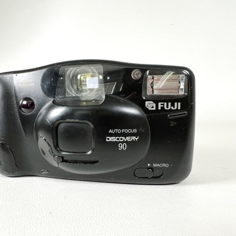 A dependable compact film camera from the 1990s, the Fujifilm Discovery 90 (also known as the Zoom Date 90 in some markets) offers autofocus simplicity and sharp image quality in a sleek, ergonomic design. It features a fixed-focus Fujinon lens, built-in flash with red-eye reduction, and an easy drop-in film loading system, making it an ideal everyday camera for casual shooters or film enthusiasts.