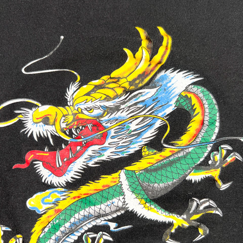 Great crossover piece for fans of Asian streetwear, Y2K-era graphics, tattoo-style dragon art, and vintage souvenir tees.