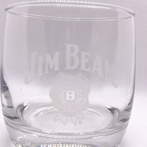 jim beam rocks glass, etched whiskey glass, bourbon glass, barware, promo glass, drink smart glass, vintage liquor glass, beam barware