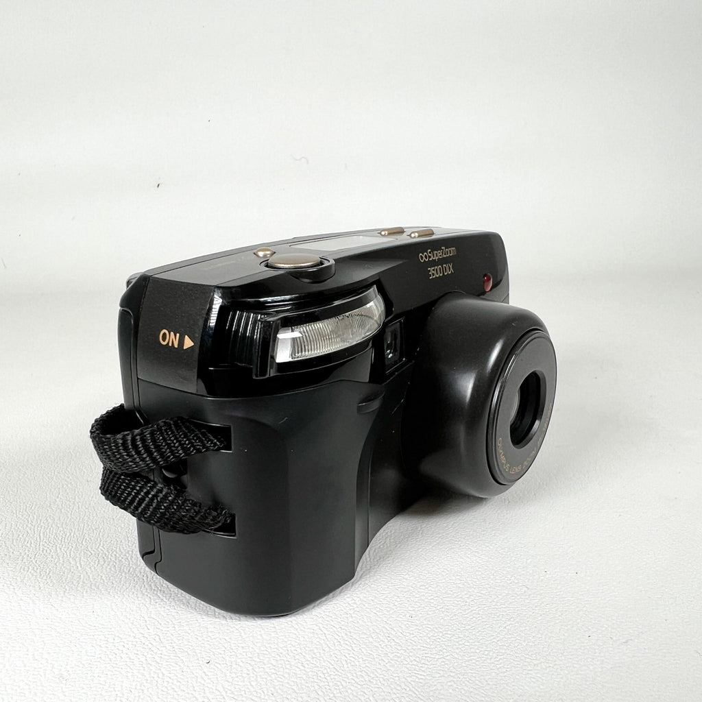 Capture the charm of point-and-shoot film photography with the Olympus SuperZoom 3500 DLX. Featuring a versatile Olympus 35–120mm zoom lens and Multi AF system, this compact camera is perfect for everyday shooting and travel. Built with a sturdy, weather-resistant body, it offers automatic functions, built-in flash, and QuartzDate for convenient date imprinting.