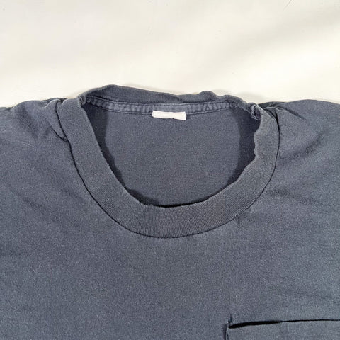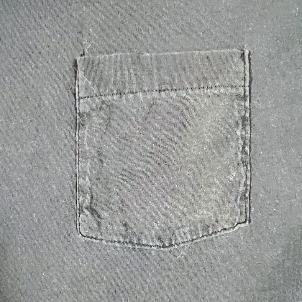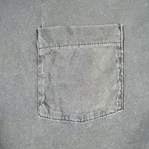 This is a blank black pocket tshirt, it is in good vintage condition with fading and a few pinholes. It is labeled as a size XXL but fits best as an adult large. Measurements below:
