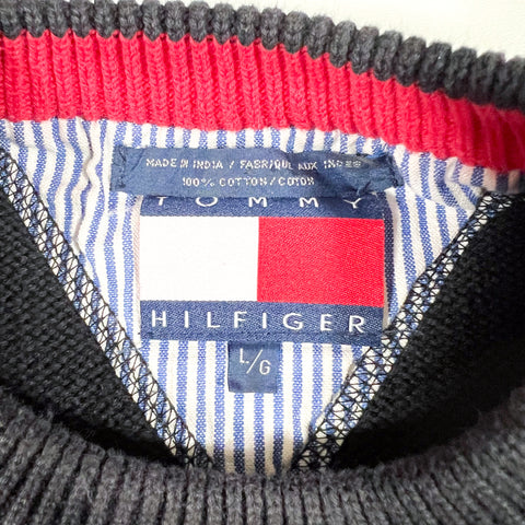 vintage tommy hilfiger sweater, 90s crest logo knit, navy cotton pullover, preppy vintage sweater, hilfiger knit crewneck, vintage tommy knit, 90s classic sweater, retro prep style