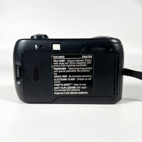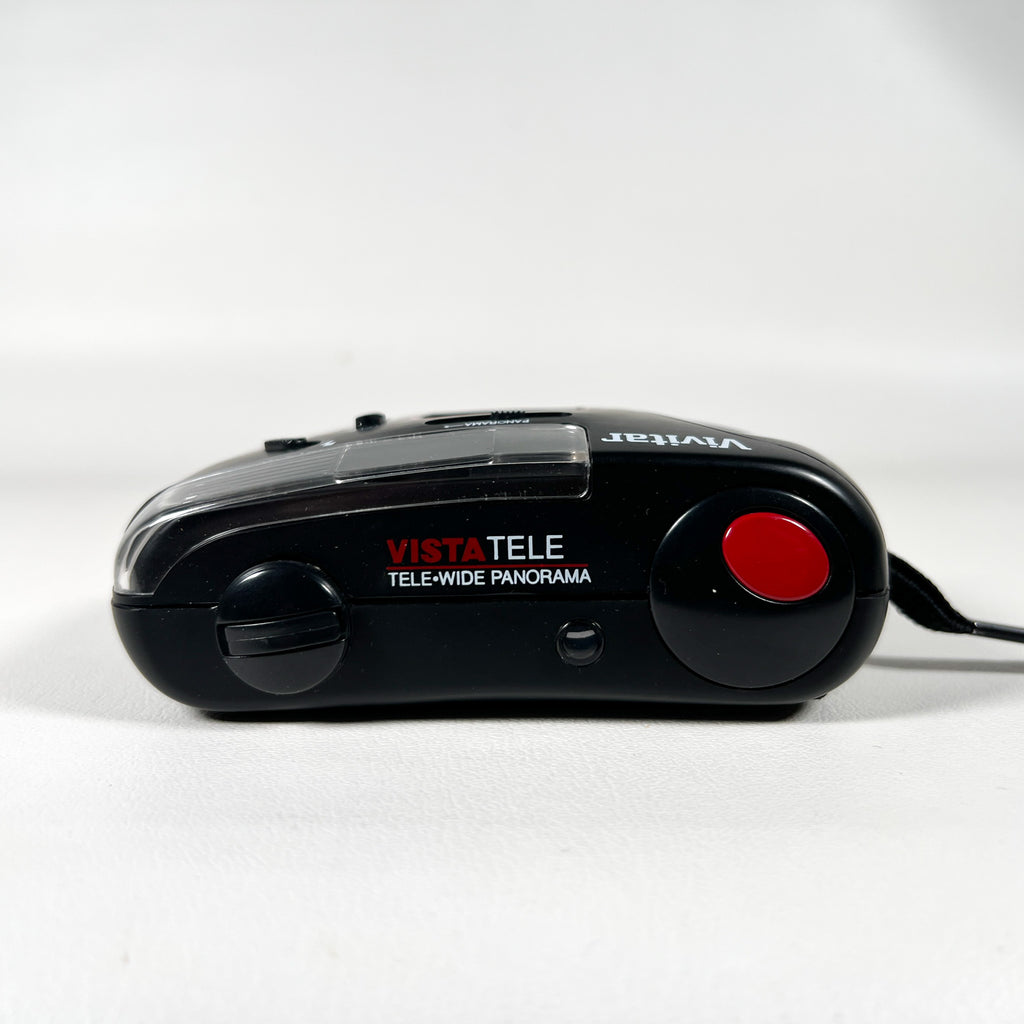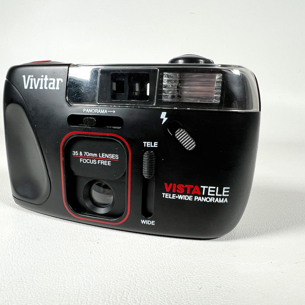 Vivitar Vista Tele camera, Vivitar Vista Tele 35mm camera, Vivitar tele wide panorama camera, vintage Vivitar film camera, 35mm point and shoot camera 1990s, focus free 35mm camera, Vivitar dual lens camera, beginner film camera, Vivitar panorama camera