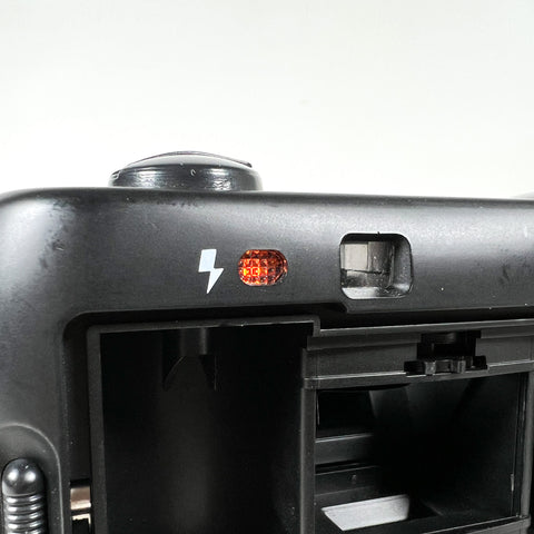 The camera is focus-free, meaning there is no focusing required—just load film, point, and shoot. A built-in electronic flash with a simple on/off switch makes it easy to shoot in lower light situations.
