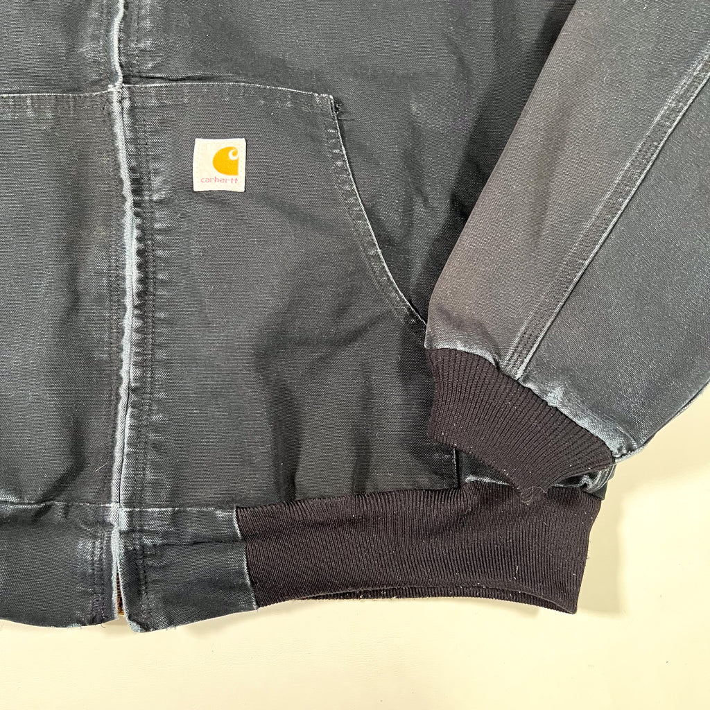 carhartt jacket black j131 duck active workwear hooded zip chore coat y2k vintage outerwear xl xxl rugged canvas flannel lined