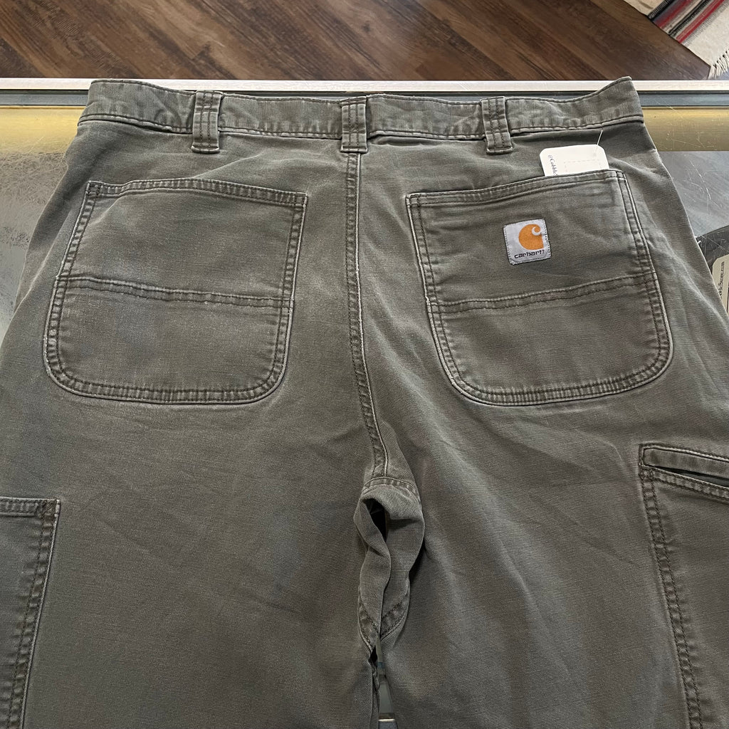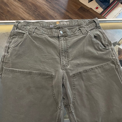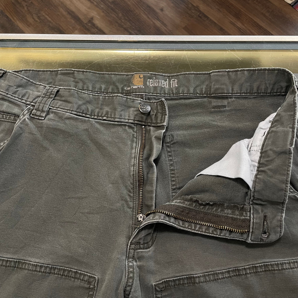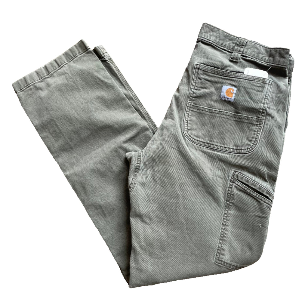 This is a pair of green carhartt pants, they are in great vintage condition (with some minor wear on the knees) and are labeled as a size 36x34. See measurements below: