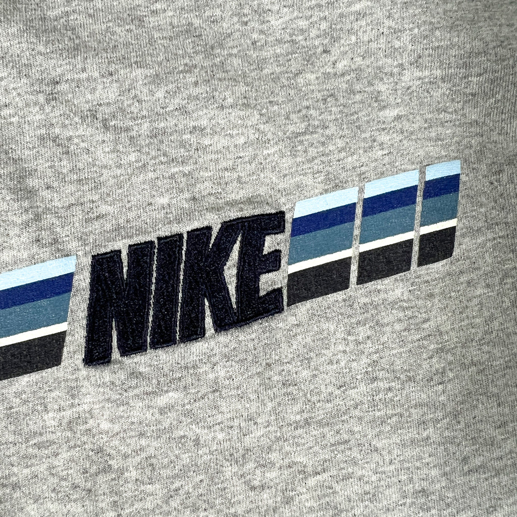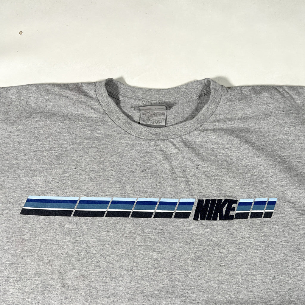 vintage nike t shirt, y2k nike tee, early 2000s nike shirt, striped nike logo tee, gray nike graphic t shirt, retro nike streetwear, vintage athletic tee, y2k sportswear shirt