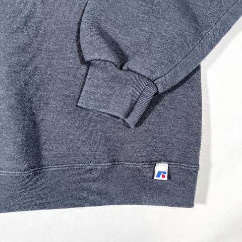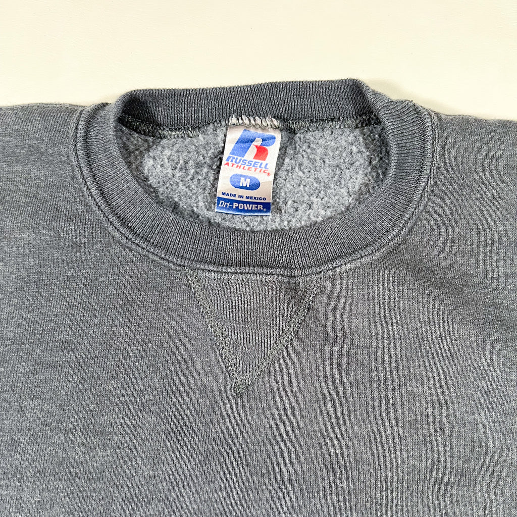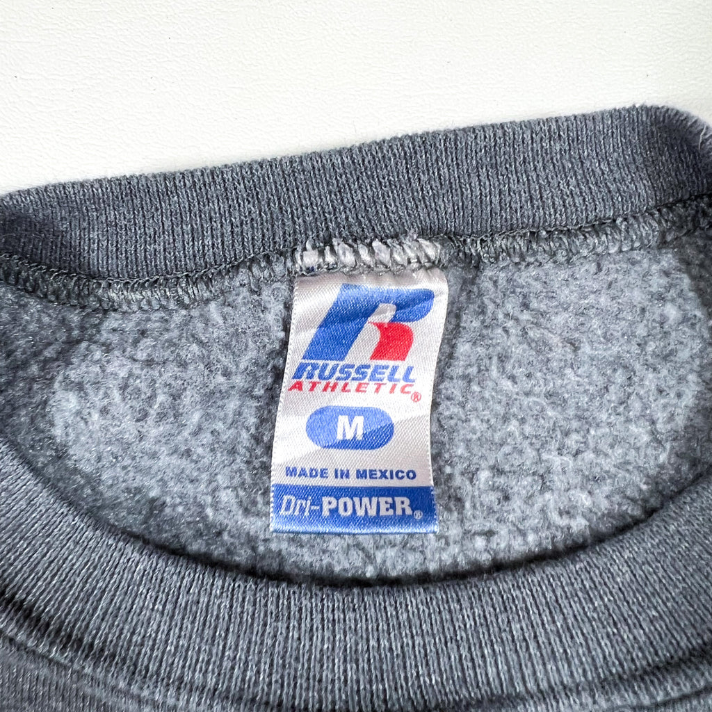 Classic Y2K Russell Athletic crewneck in a clean, heathered gray. Features the signature V-stitch at the collar, ribbed cuffs and hem, and the small Russell “R” logo tab at the waistband. Soft fleece interior and a timeless athletic fit.